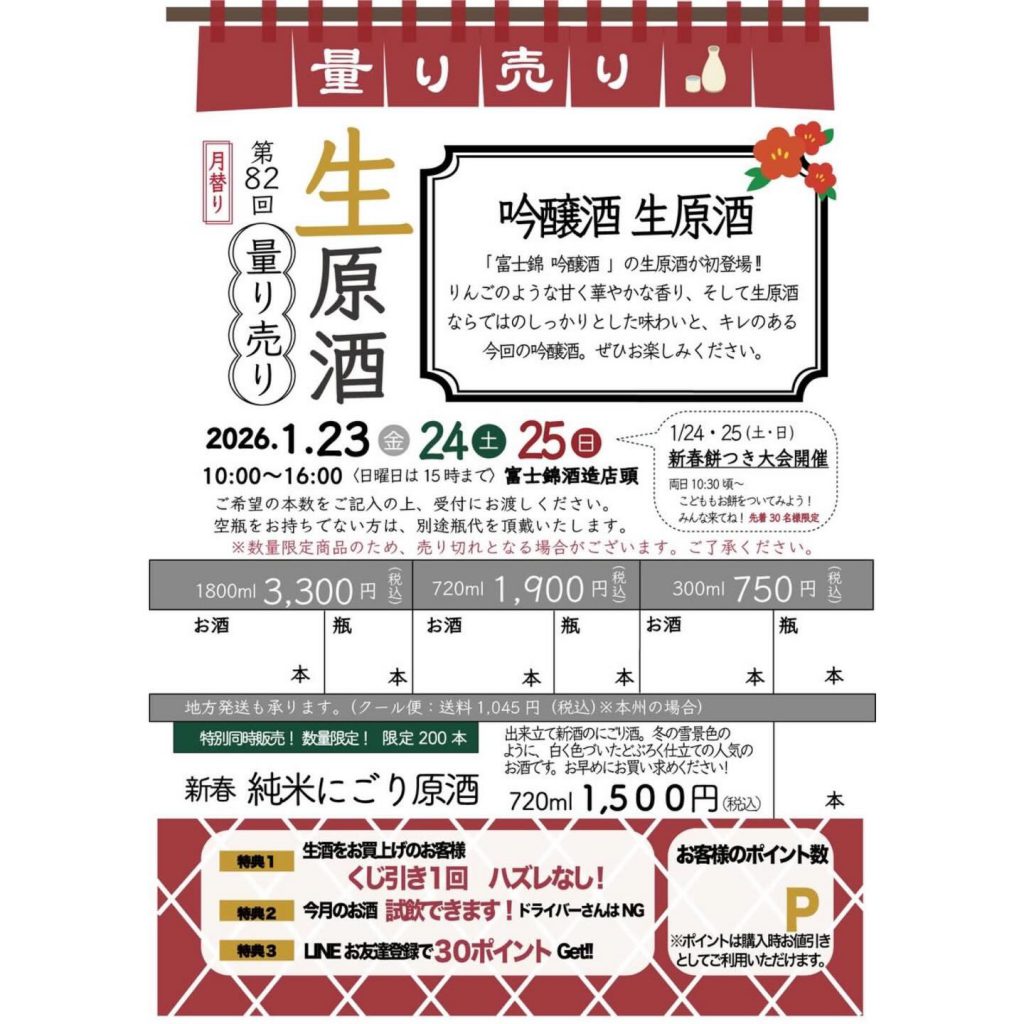イベント情報 原酒量り売り&ユノプティマルシェ 富士錦酒造にて、原酒量り売り&Yuno Petit Marcheが開催されます。 Instagram @sake_fujinishiki もチェック! 富士錦酒造株式会社/富士山湧水仕込みの酒 FB カレンダーに戻る
