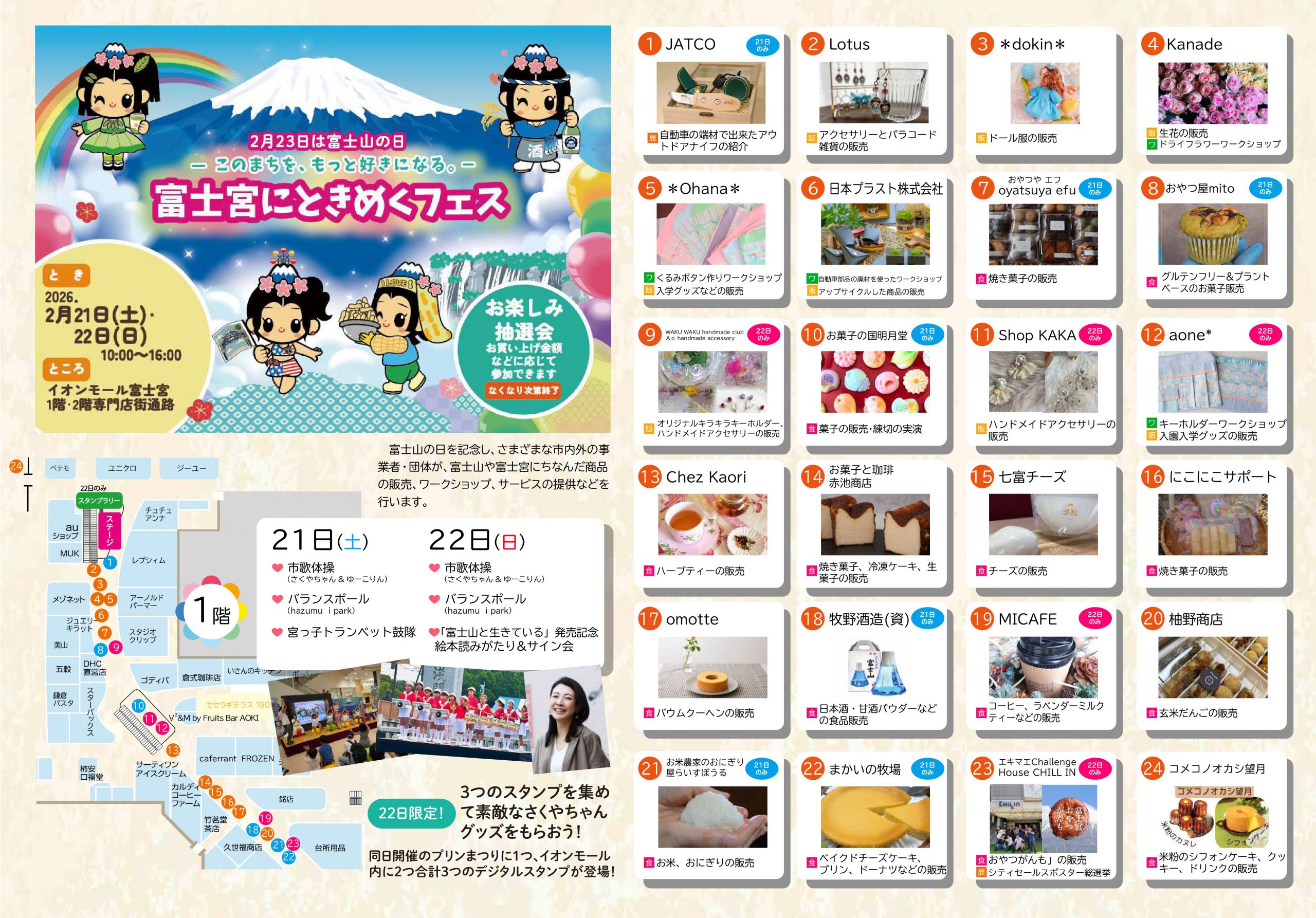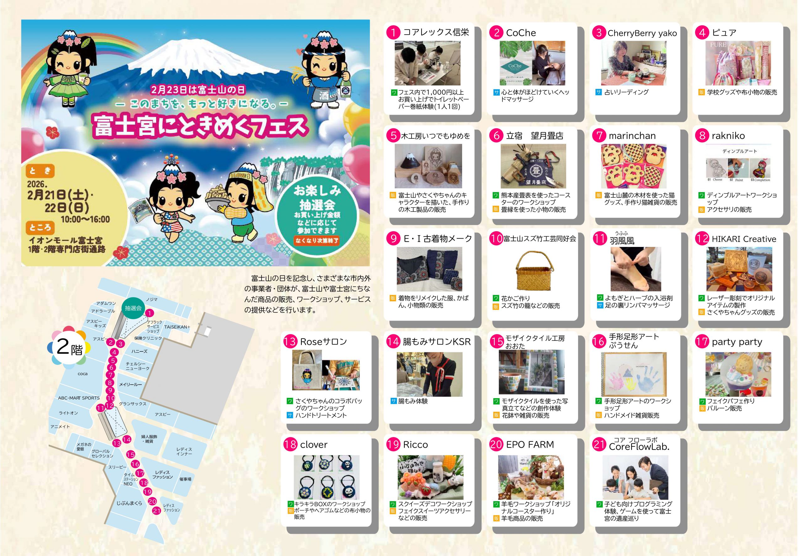 イベント一覧 プリンまつり ~スイーツのまち富士宮~ 2026-01-23 2026年2月22日(日)10時~、神田川ふれあい広場・富士山本宮浅間大社馬場にて開催! プリン情報をチェックしてお越しください! 富士宮やきそば&フードバレー公式ガイド 富士宮にときめくフェス ーこのまちを、もっと好きになる。ー 2026-01-21 次のページ